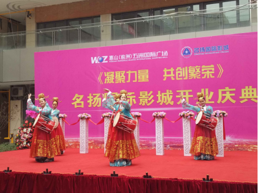 一组华丽优雅的朝鲜舞蹈为本次盛典拉开序幕,惠山区前洲街道副主任吴越、中影名扬国际影城董事长魏忠仁以及无锡龙翔商业管理有限公司负责人徐国庆先生先后发表了热情洋溢的开业致辞,并与惠山区文体局杨凯峰、无锡五洲地产有限公司总经理胥强、名扬国际影城总经理沈光夫进行了隆重的开业剪彩仪式,共同祝愿影院开业大吉!