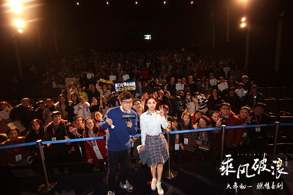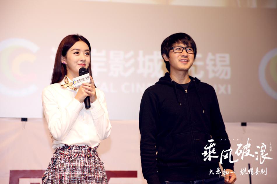 昨日,燃情喜剧《乘风破浪》的导演韩寒、女主角赵丽颖现身江苏省无锡市多家影院,与无锡观众映后见面,并大派福利。此次无锡路演,韩寒和赵丽颖先后来到百丽宫影城、大世界影城、金逸荟聚影城、海岸影城、cgv影城、惠山万达影城和博纳影城7家影城,与观众见面并进行亲密互动。赵丽颖致谢观众粉丝说:“谢谢你们支持《乘风破浪》、支持我。《乘风破浪》很多桥段、很多歌都让我特别感动。谢谢你们喜欢。”无锡7场见面会,场场爆满、人山人海,现场气氛火热、粉丝观众尖叫不断。在现场,赵丽颖与粉丝互动亲密无间,甚至扬言要与粉丝斗表情包。韩寒表示:“别被丽颖娇小的身材骗了,其实她很有爆发力,演戏时什么角色、情绪都能撑得起来。”惠山万达影城现场更是迎来一对“特殊”情侣,两人相恋多年,虽已订婚但男方却从未求婚。此次男方特意带女方来到现场,在丽颖和韩寒的见证与祝福下完成了这个神圣又浪漫的仪式,一时间现场氛围又热烈又感动。