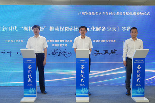 活动现场签署了《运用新时代“枫桥经验”推动保险纠纷多元化解备忘录》,明确法院、监管部门与保险公司三方职责。根据方案,江阴市将建立“先行理赔+诉调对接”双机制:涉诉案件原则上先引导至保险公司理赔,调解破裂后再进入诉讼程序;适合调解的案件则分流至工作站,由专职团队介入处理。