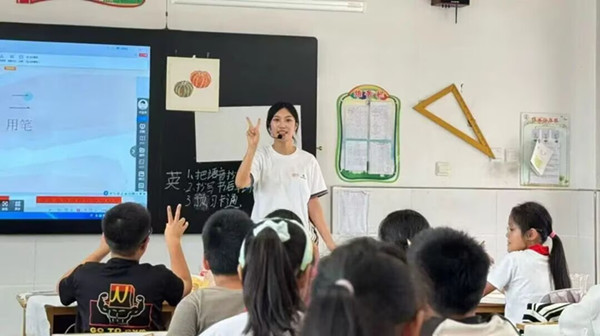 踏上支教路,才懂教育是师生一起成长。初上课时,孩子们连“Hello”都怯于开口。如今课堂里全是此起彼伏的英语短句,下课他们追着问“苹果怎么说”。从支吾到主动,从躲闪到举手,每点蜕变都像小太阳温暖着我。课堂上的阵阵欢笑、课后围在讲台前的提问、孩子们递来的手绘感谢卡,都是这段时光里最珍贵的馈赠。