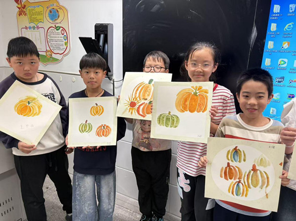 “老师,我的南瓜像太阳!”扎羊角辫的小女孩举起画。一个小男孩专注地伸出舌头,画完长舒一口气:“原来南瓜也长皱纹啊。”他指的是瓜上的纹路。我忽然感动——他们在学画的路上,也学会了观察生命的细节。